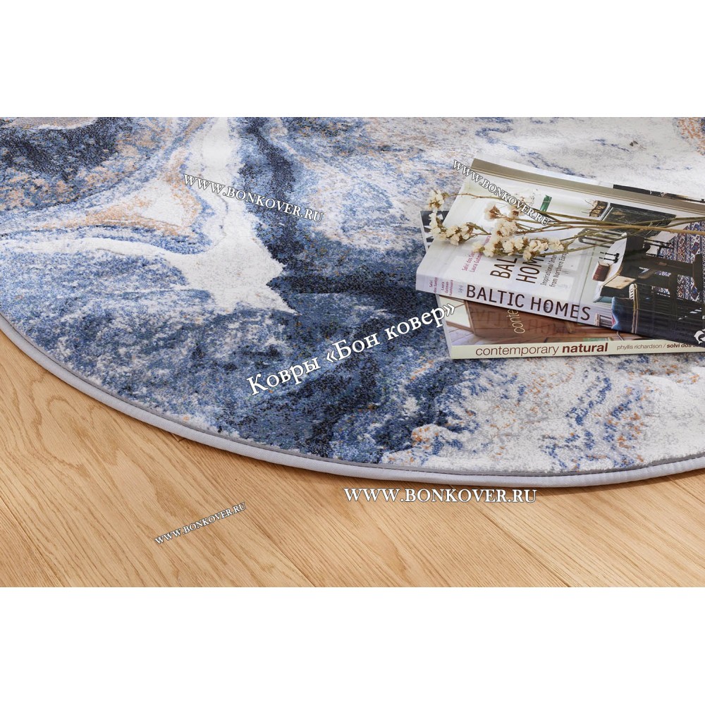 Ковер для гостиной Арт 28945 Круг Синий станет блестящим дополнением интерьера, оформленного в современном или классическом стиле. Мягкое, но прочное, ковровое изделие обеспечивает тепло- и шумоизоляцию, отличается длительным периодом эксплуатации, надежностью, экологичностью и высокой износостойкостью, является отличным барьером от повышенной влажности в помещении и утеплителем для холодного пола. Благодаря качеству материалов, ковер не деформируется, сохраняет первоначальный вид под тяжестью предметов мебели. За его поверхностью легко ухаживать.