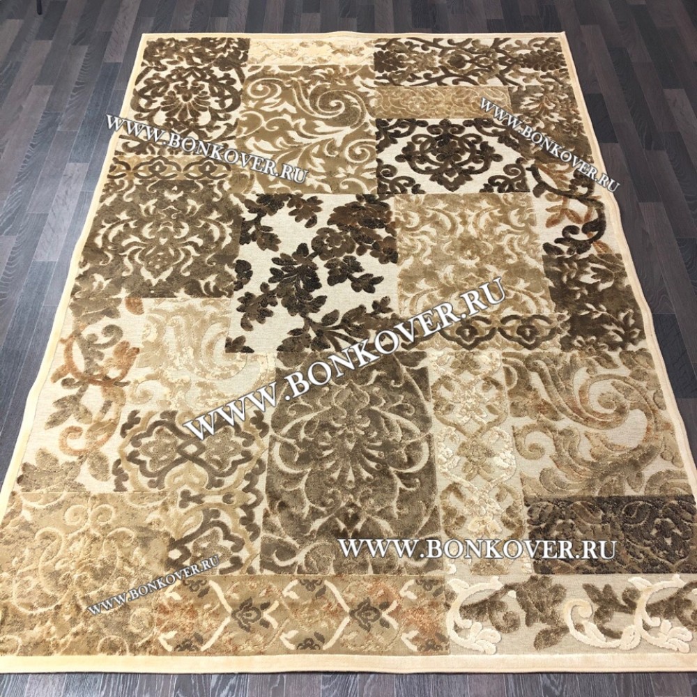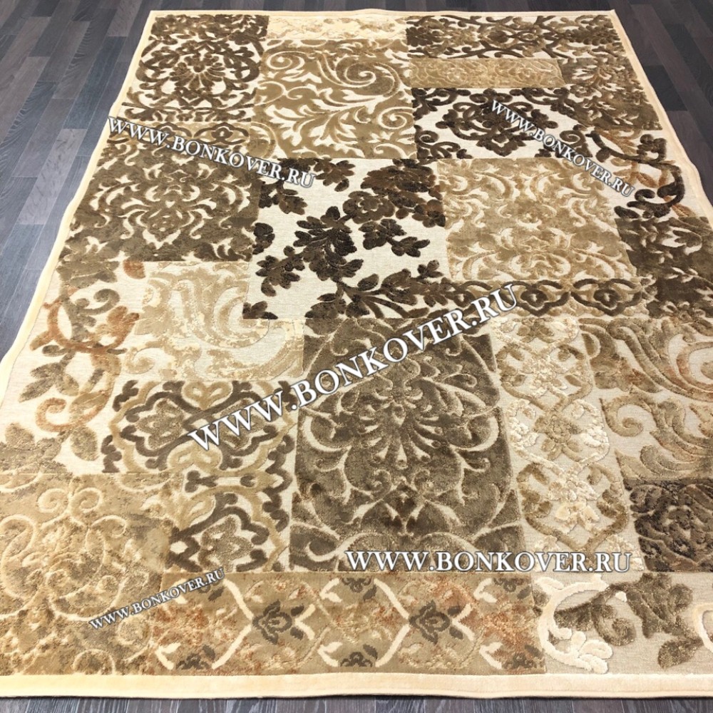 Ковер для Гостиной из Артшелка Дизайн 22 Бежево-Коричневый станет превосходным дополнением интерьера, оформленного в современном или классическом стиле. Мягкое, но прочное, ковровое изделие обеспечивает тепло- и шумоизоляцию, отличается длительным сроком эксплуатации, надежностью, экологичностью и высокой износостойкостью, является отличным барьером от повышенной влажности в помещении и утеплителем для холодного пола. Благодаря качеству материалов, ковер не деформируется, сохраняет первоначальный вид под тяжестью предметов мебели. За его поверхностью легко ухаживать.