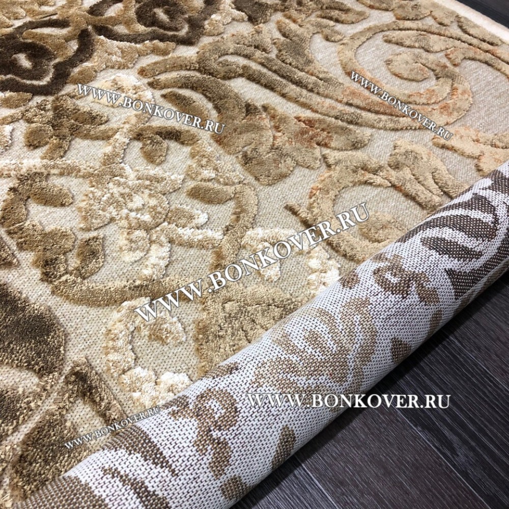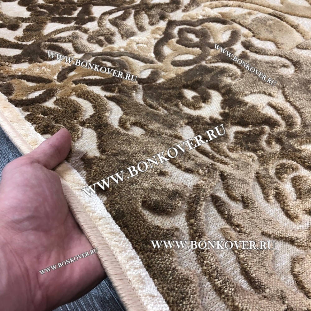 Красивый Ковер для Гостиной из Артшелка Дизайн 22 Бежево-Коричневый наполняет интерьер помещения теплом и уютом, гармонично сочетает в себе изящество и красоту. Он создан из высококачественного сырья, комфортный и долговечный.