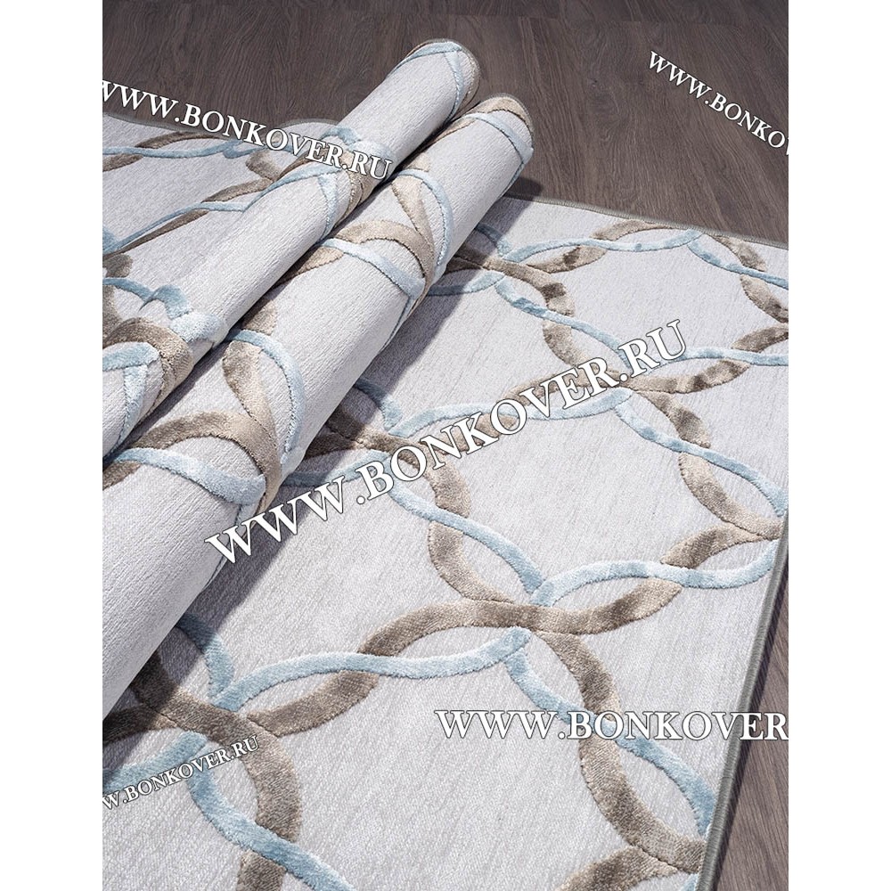 Изящный Ковер для гостиной из артшелка дизайн 37 Серый с Голубым наполняет интерьер комнаты теплом и уютом, гармонично сочетает в себе изящество и стиль. Он создан из экологически чистого сырья, комфортный и долговечный.