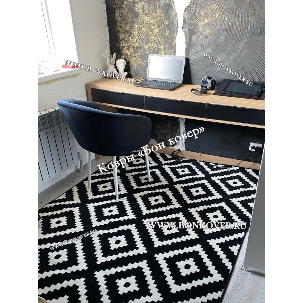 Шикарный Ковер скандинавский черно-белый наполняет интерьер помещения теплом и уютом, гармонично сочетает в себе изящество и стиль. Он соткан из высококачественного сырья, комфортный и долговечный.