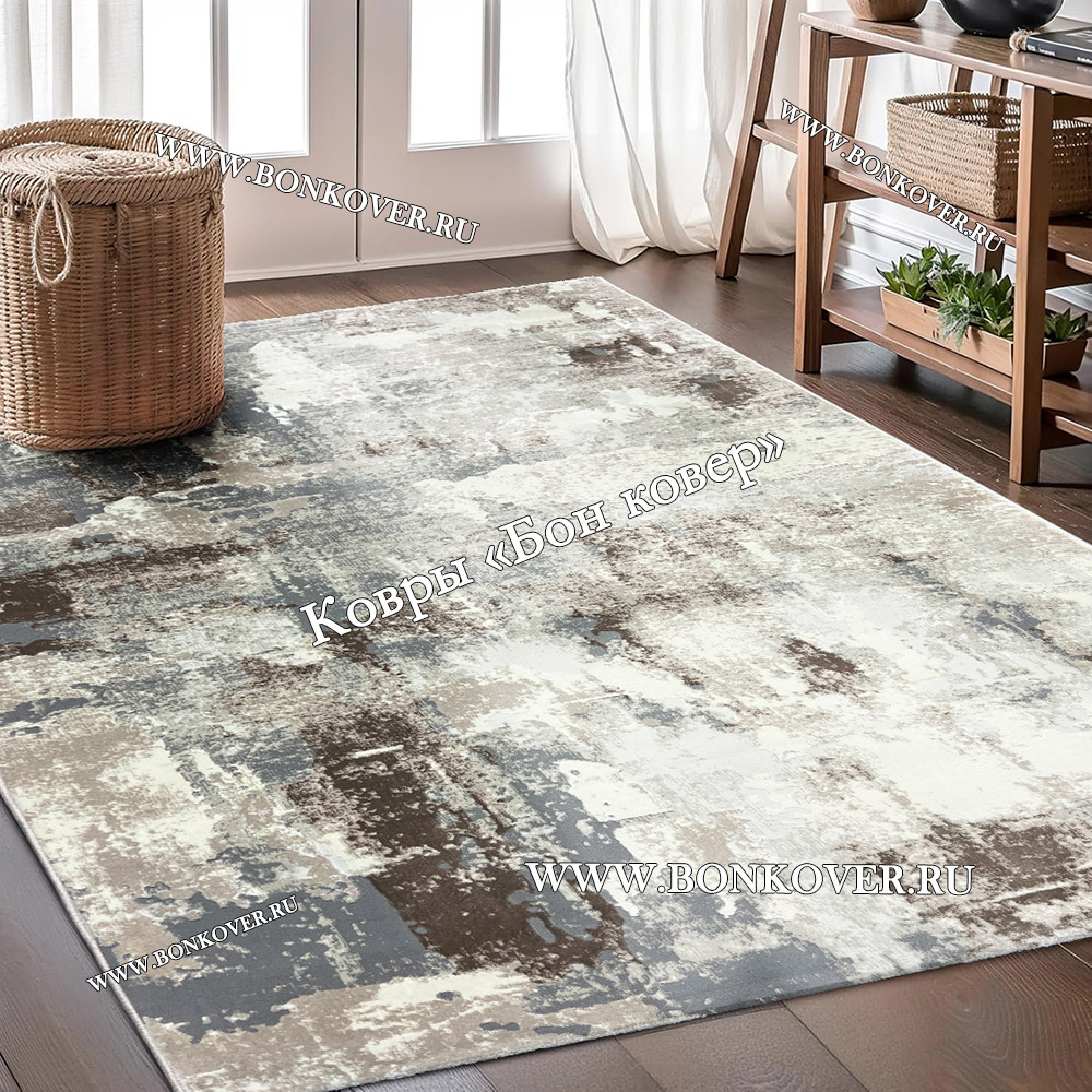 Элегантный Ковер Турция Современный Дизайн 25 Серый с Коричневым наполняет интерьер помещения теплом и уютом, гармонично сочетает в себе изящество и стиль. Он соткан из износостойких материалов, прочный и долговечный.