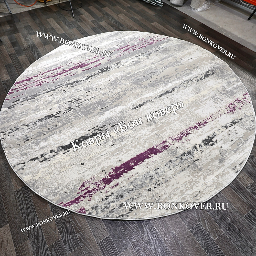 Красивый Круглый Ковер Для Гостиной Сиреневый С Серым Дизайн 30451 наполняет интерьер вашего дома теплом и уютом, гармонично сочетает в себе изящество и стиль. Он соткан из высококачественных материалов, прочный и долговечный.