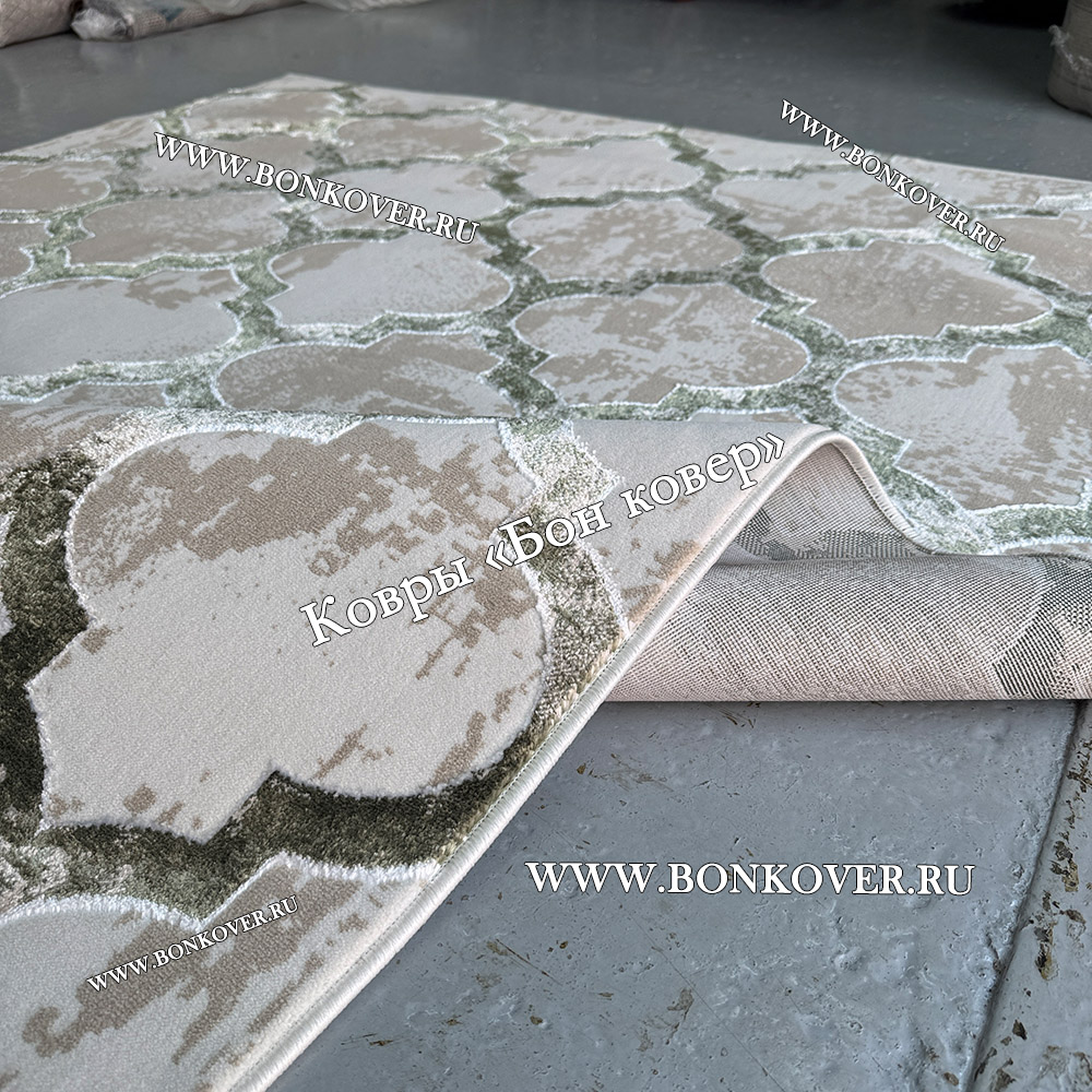 Элегантный Турецкий Геометрический Ковер Арт 30361 Бежевый с Зеленым наполняет интерьер вашего дома теплом и уютом, гармонично сочетает в себе изящество и красоту. Он создан из износостойких материалов, прочный и долговечный.