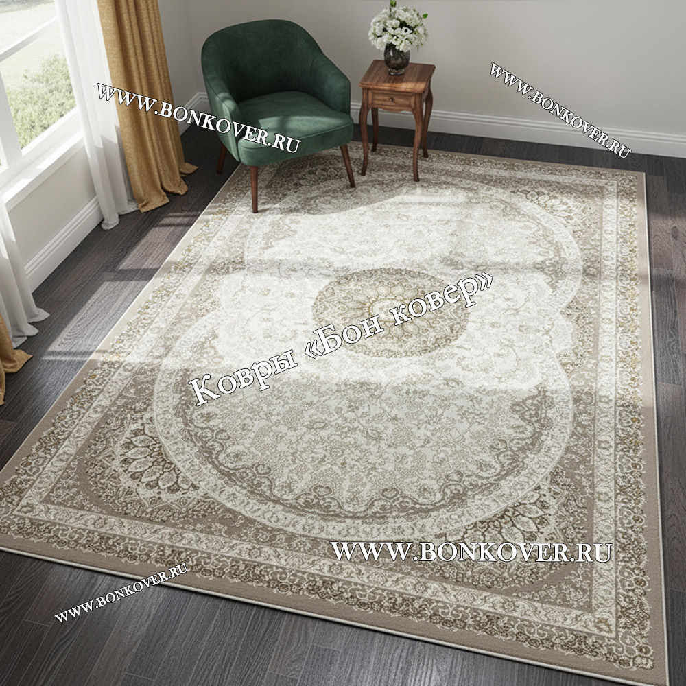06.02.2024 Читать полный отзывНевероятной красоты ковер, действительно с белым оттенком, как будто седым налетом. Очень интересный замысловатый рисунок, просматриваются бежевые и серо-бежевые тона, просто украшение комнаты!) Огромное спасибо замечательной компании Бон Ковёр! Самая крутая компания☺️