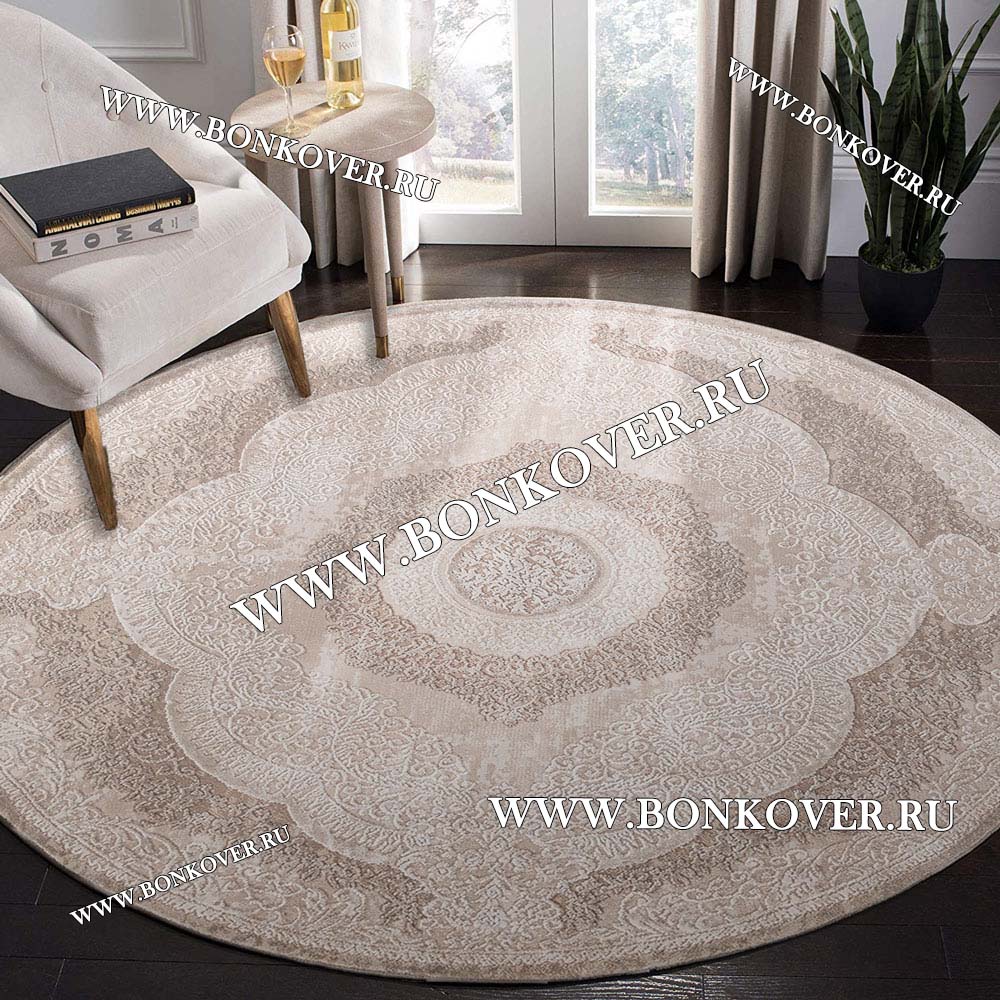 Импозантный Турецкий Ковер Для Гостиной Дизайн 46 Бежево-Коричневый Круг наполняет интерьер комнаты теплом и уютом, гармонично сочетает в себе изящество и стиль. Он соткан из износостойких материалов, прочный и долговечный.