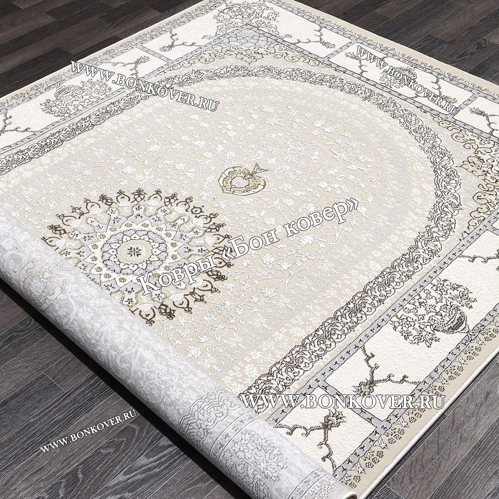 04.07.2023 Читать полный отзывНевероятной красоты ковер, действительно с белым оттенком, как будто седым налетом. Очень интересный замысловатый рисунок, просматриваются бежевые и серо-бежевые тона, просто украшение комнаты!) Огромное спасибо замечательной компании Бон Ковёр! Самая крутая компания☺️