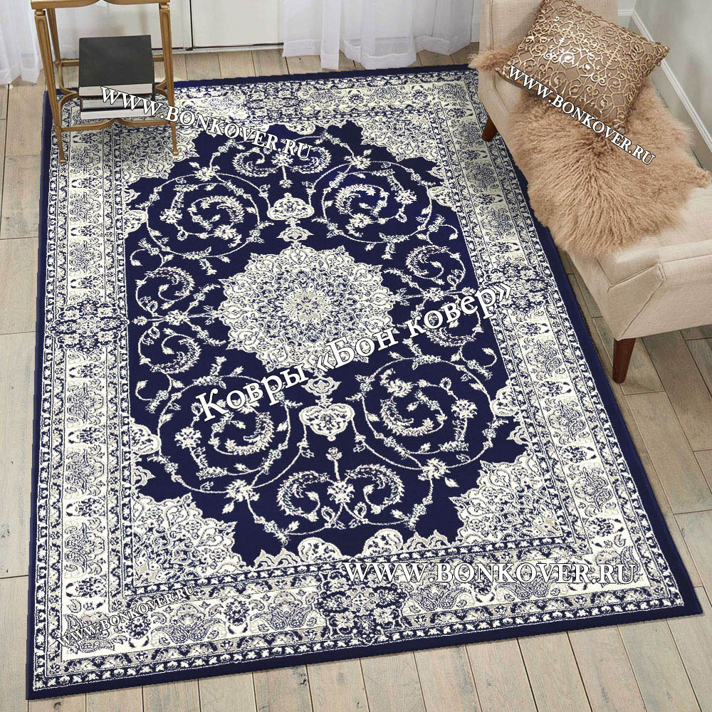 Импозантный Турецкий Ковер Медальон дизайн 73 Синий наполняет интерьер помещения теплом и уютом, гармонично сочетает в себе изящество и красоту. Он выполнен из современных материалов, комфортный и долговечный.