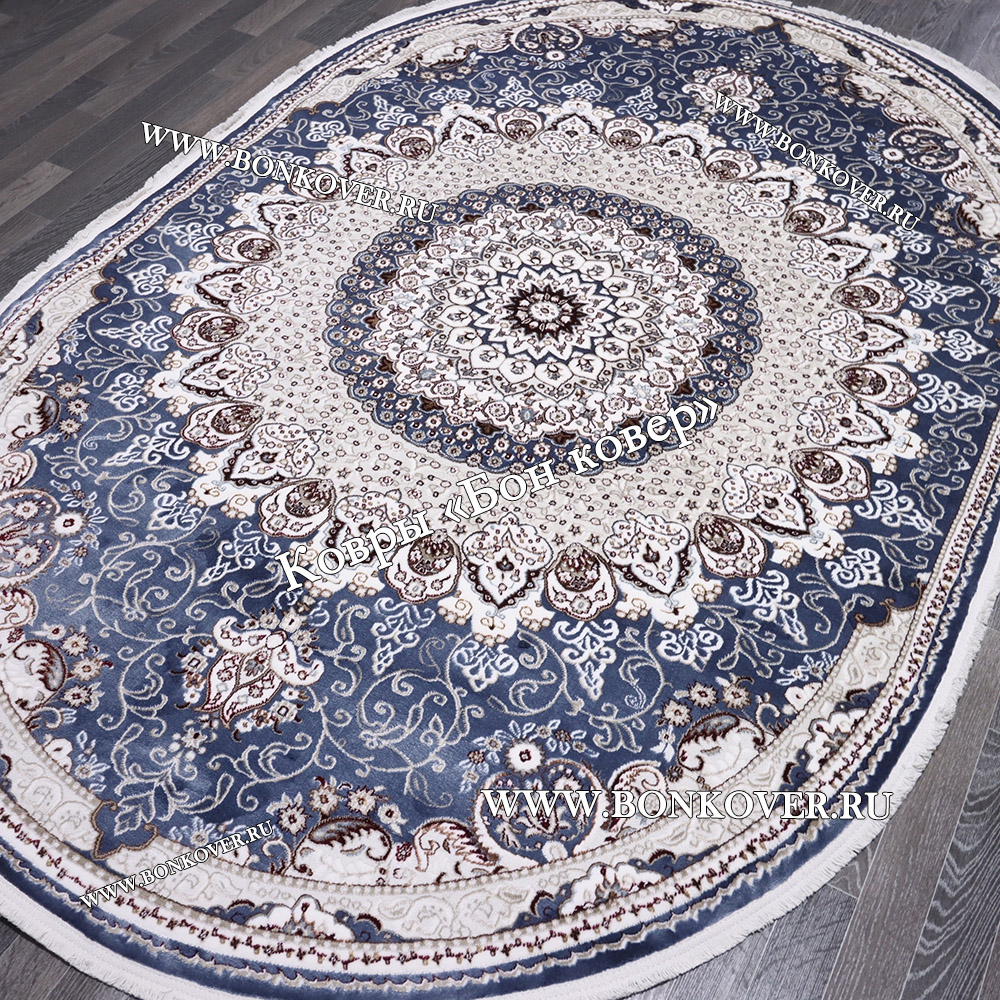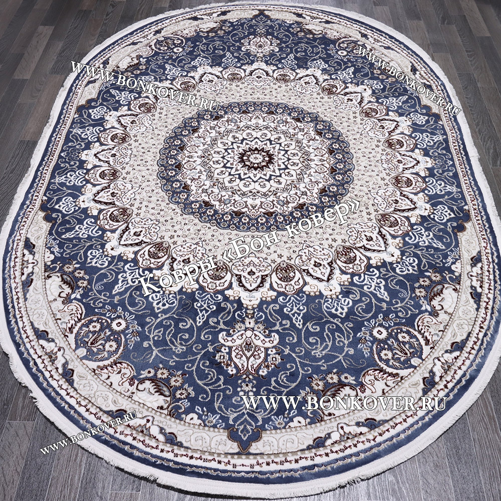 Турецкий Ковер для гостиной дизайн 016 Синий Овал